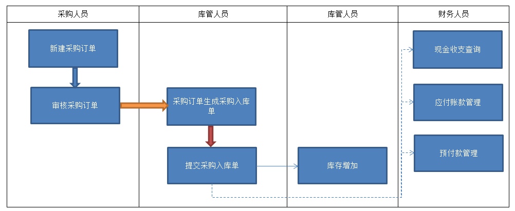 采购业务包括:采购订单、采购入库、采购退货以及伴随着这些业务的资金管理。